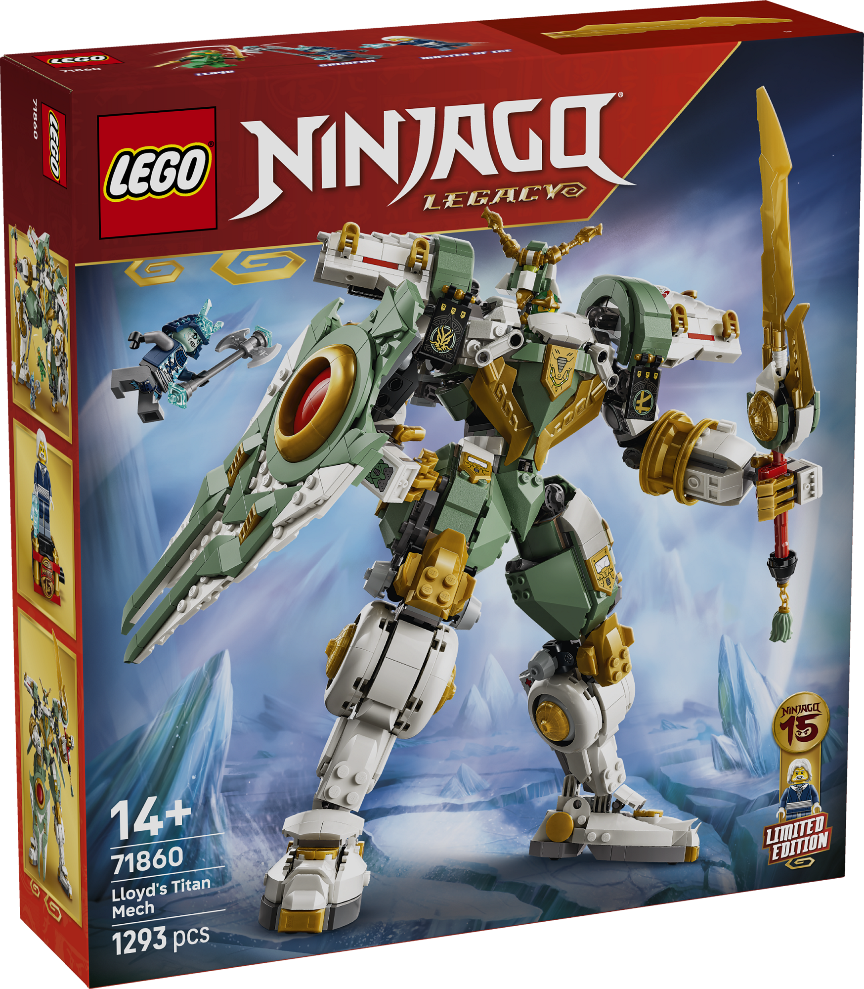 Tegevusfiguur – Lloydi titaanroboti 15. aastapäeva (71860) ehituskomplekt 14-aastastele ja vanematele poistele, tüdrukutele ja nostalgilistele fännidele, et tähistada telesarja LEGO® NINJAGO® 15. aastapäeva