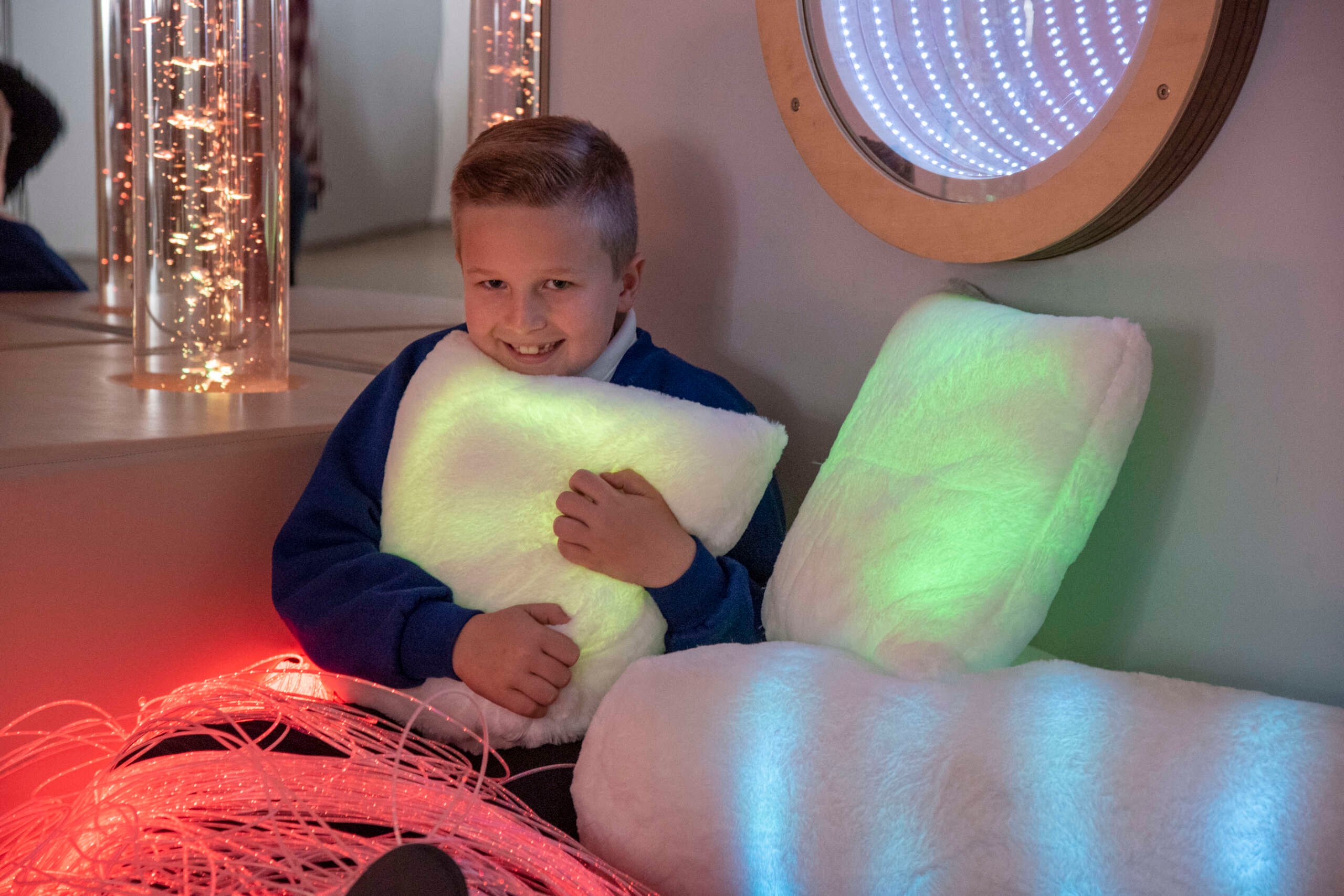 “TTS kandilised helendavad padjad, 2 tk toetavad keskendumist ja visuaalset töötlust sensoorse õppe keskkonnas. Valgus on padja sees ja käivitub katte sees oleva peidetud lüliti kaudu. Vali aeglane värvivahetus või õrn vilkumine. Kasuta patju tunnetustoas, rahunemisalas või vaikse lugemisnurga põrandal. Eemalda kate ja pese 30 kraadi juures, et ühiskasutus oleks hügieeniline.