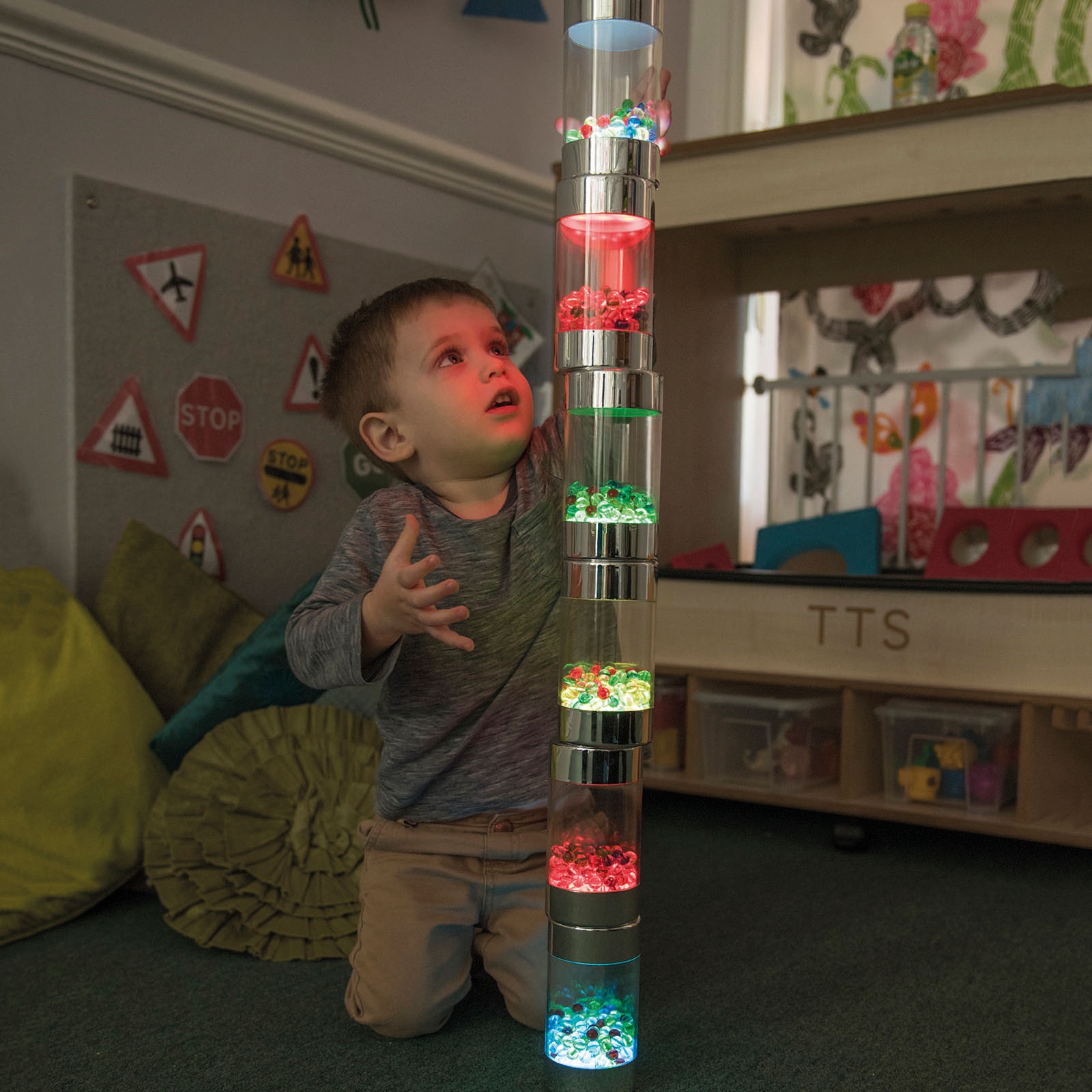 TTS helendavad silindrikujulised raputid, 6 tk toetab alushariduse sensoorset avastamist veeretamise ja liikumise kaudu. Lapsed jälgivad, kuidas rull liigub, muudab suunda ja peatub, mis aitab rääkida lihtsas keeles liikumisest ja jõust. Valgus kutsub visuaalsele jälgimisele ja ühismängule, eriti hämaras. Kasuta rulle kordamööda mängudes, lihtsatel radadel ja rahulikes sensoorse reguleerimise tegevustes.