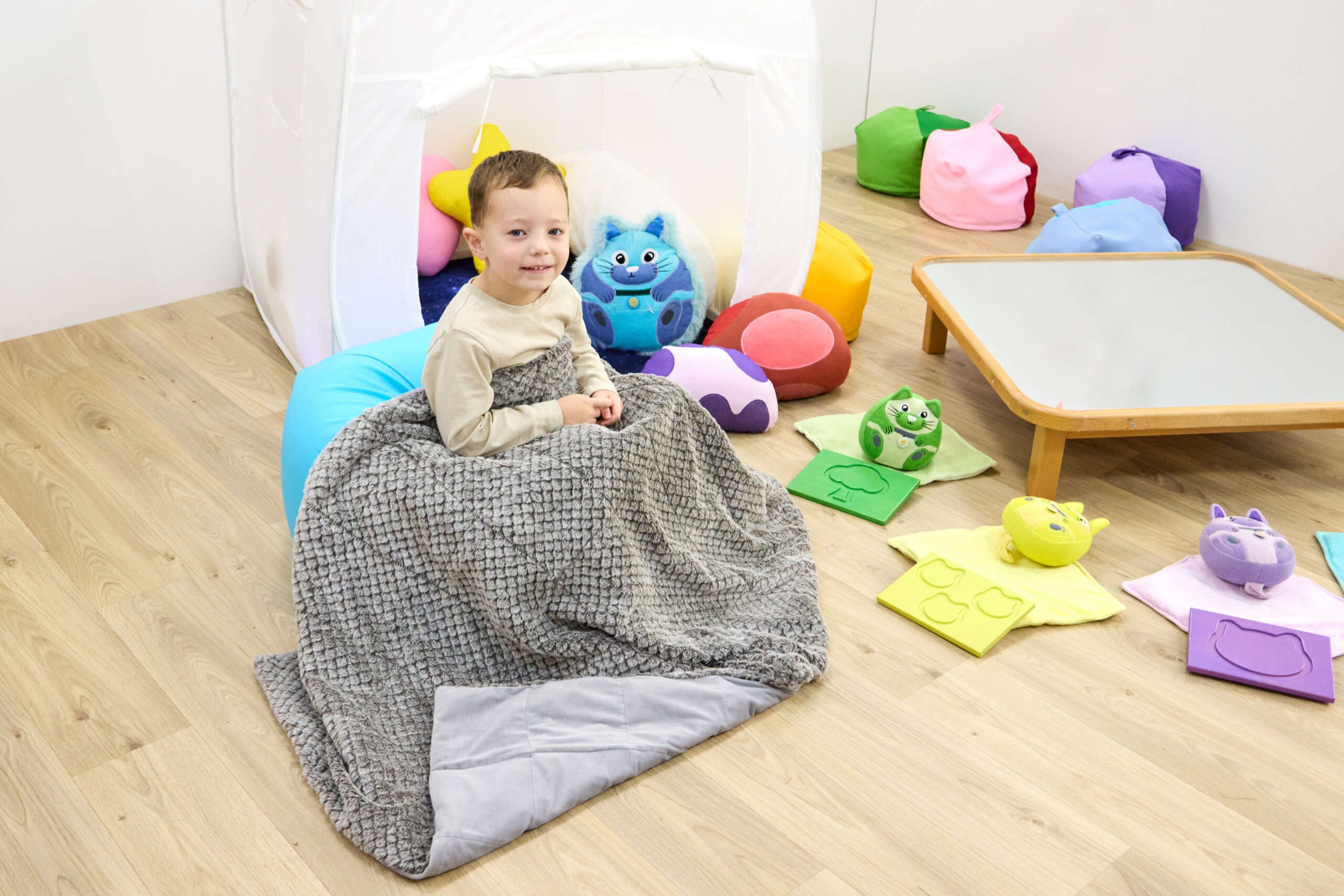 “TTS 1,4kg kaaluv tekstuuriga rahustav raskustekk ühendab sügava surve ja kompimissisendi, et toetada rahunemist ja mugavat puhkust. Kasuta seda regulatsioonirutiinis pärast aktiivset tegevust, üleminekute ajal või siis, kui õppija vajab vaiksemat hetke. Raskustekk tuleb valida hoolikalt ning raskusvahendeid soovitatakse sageli kasutada kuni 5-10% lapse kehakaalust. Vajalik on täiskasvanu järelevalve. Puhasta vajadusel niiske lapiga, et tekk oleks valmis igapäevaseks kasutuseks.